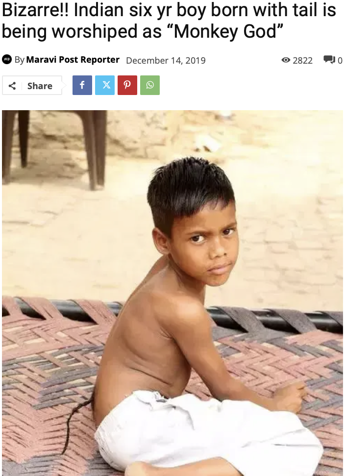 印度是个搞笑的民族,婴儿生下来畸形,脸上长了一个大肉瘤,村民就说是象头神转世,供养起来。