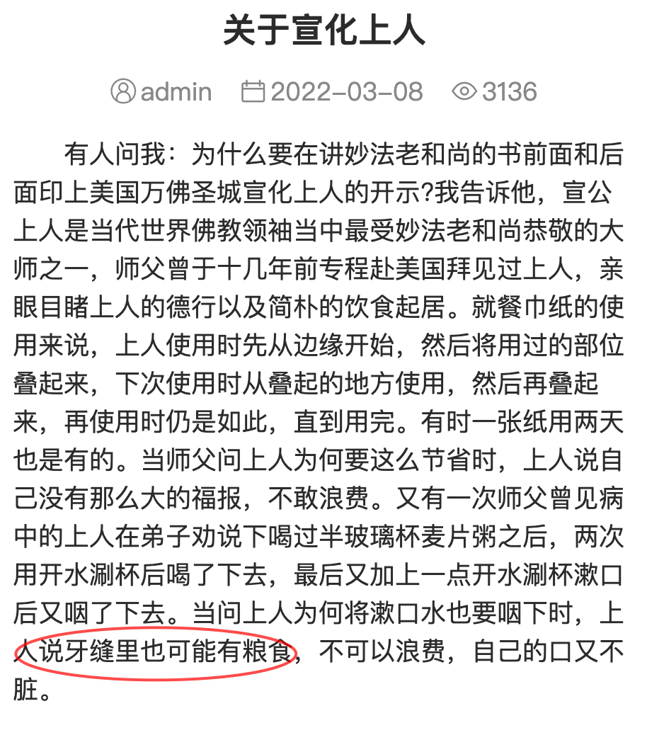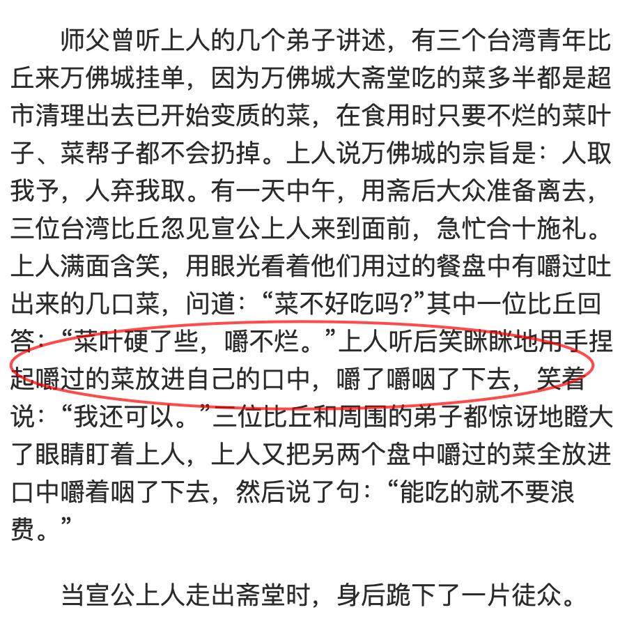 宣化曾经在众目睽睽之下,将他人嚼不烂的菜叶纳入口中,四座皆惊,徒众跪倒一片——好一出精彩的道德戏剧。
